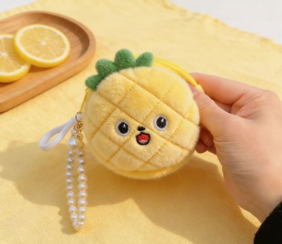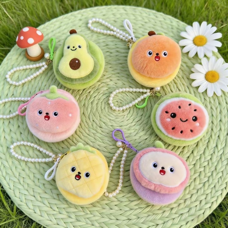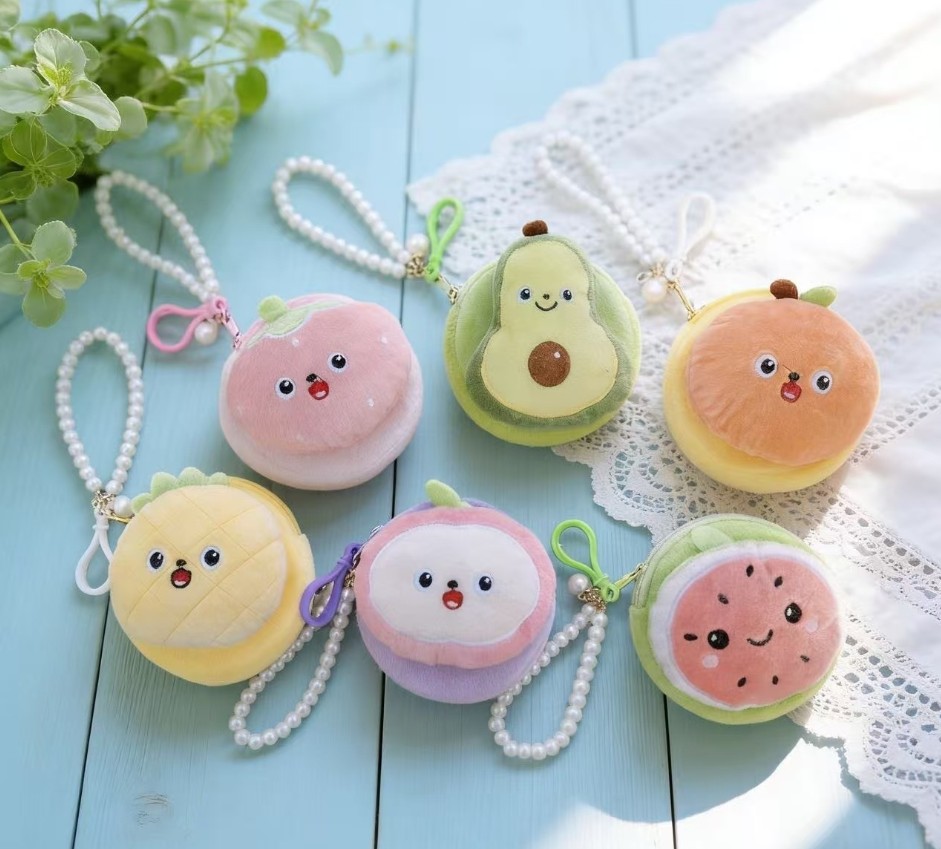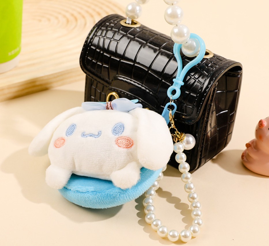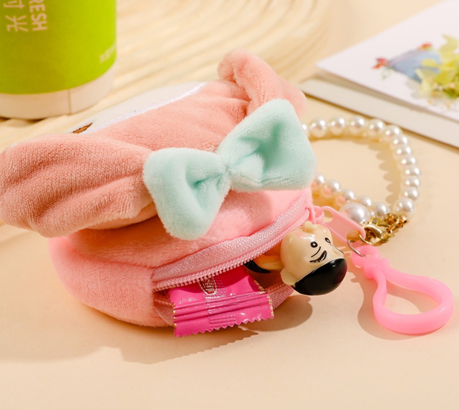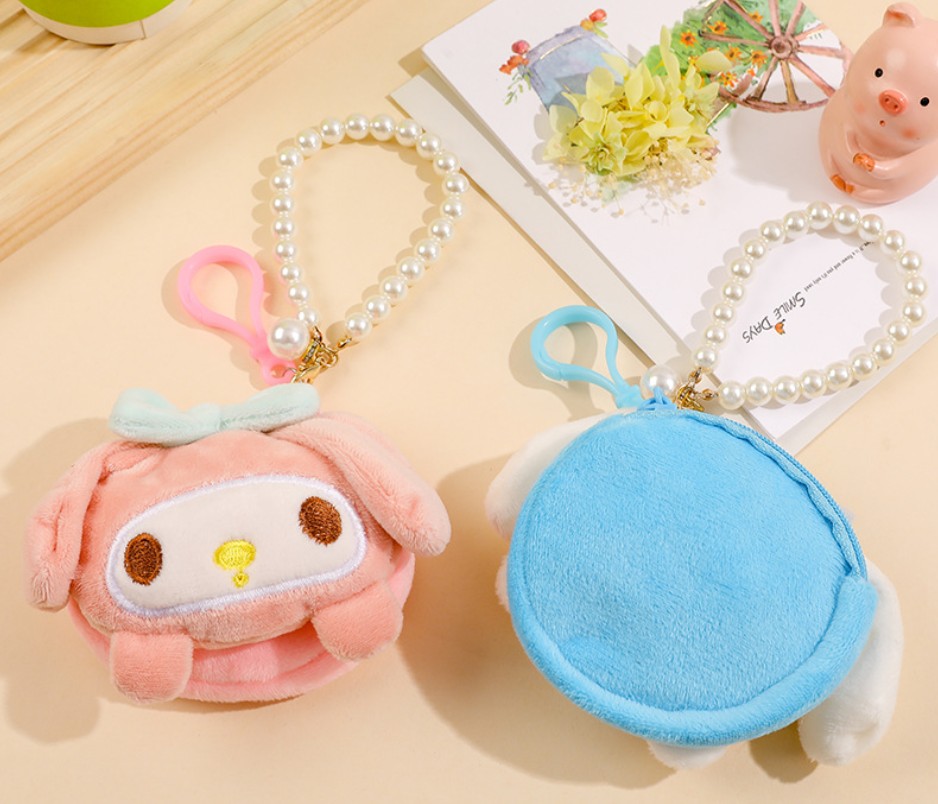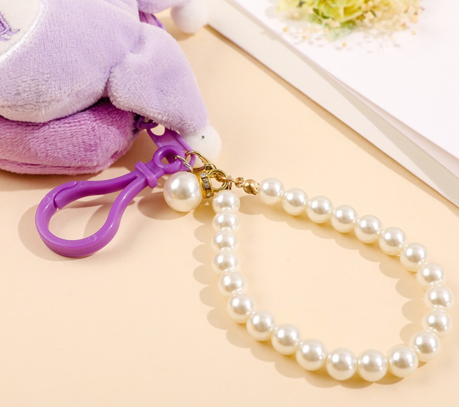 材質 :毛絨-現有色 , 拉鍊 , 塑膠扣+珍珠掛繩(可以不加)