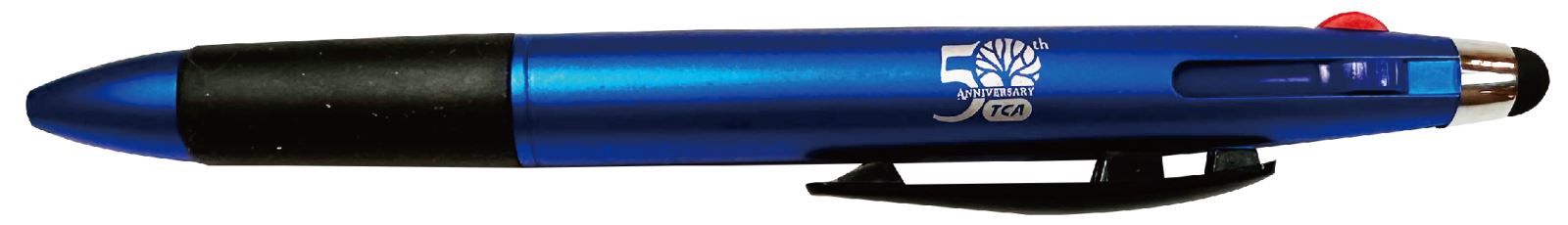 規格:藍色三色觸控原子筆/塑膠面噴霧漆/印一色LOGO(銀)