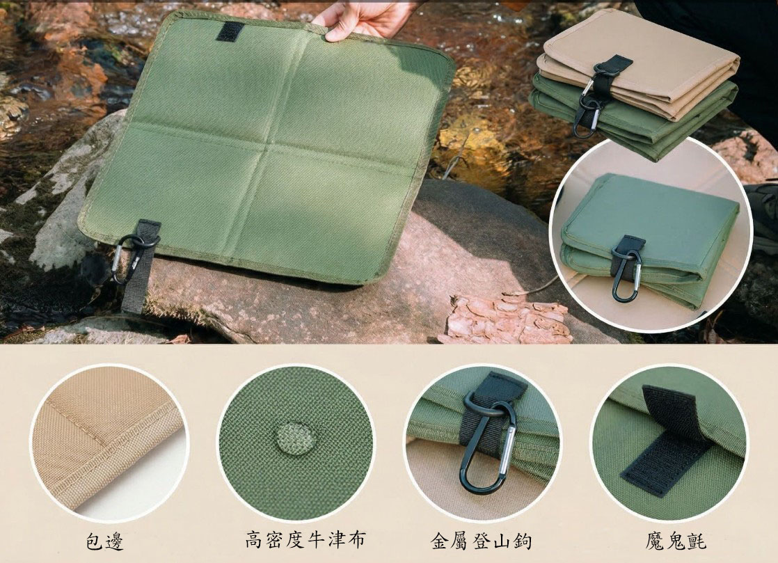 材質 : 牛津布 , 珍珠棉 , 登山鉤 , 魔鬼氈 , 布標