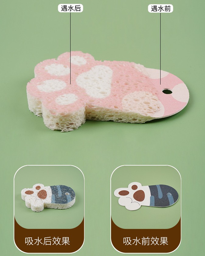 木漿海綿:是由天然木漿纖維製成的海綿,為可再生環保材質,不含任何有害物質或合成材料