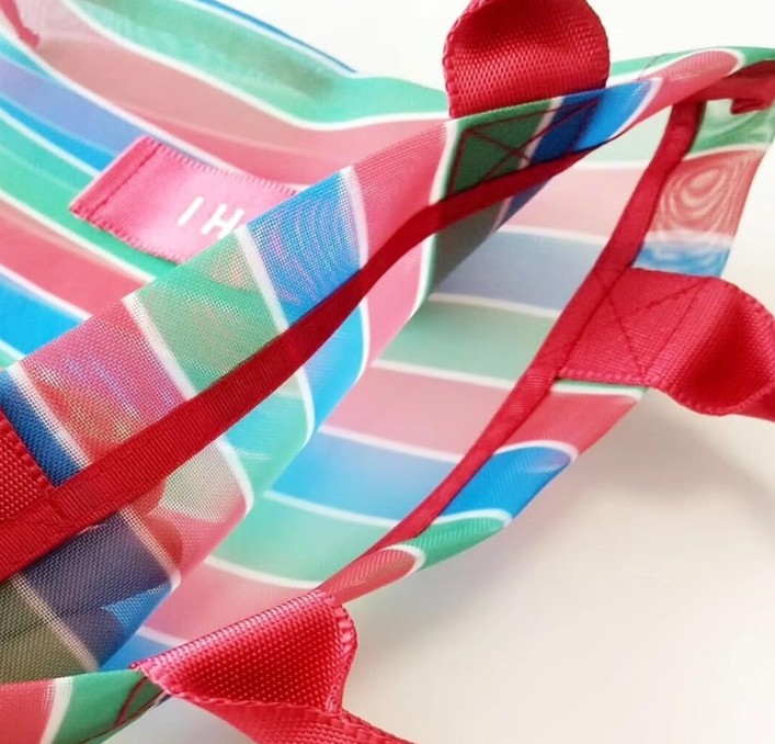 尼龍網紗茄芷袋(提把對折)-條紋客製