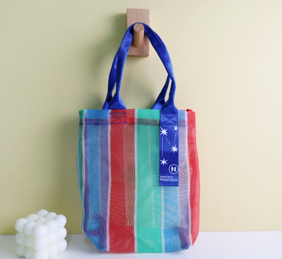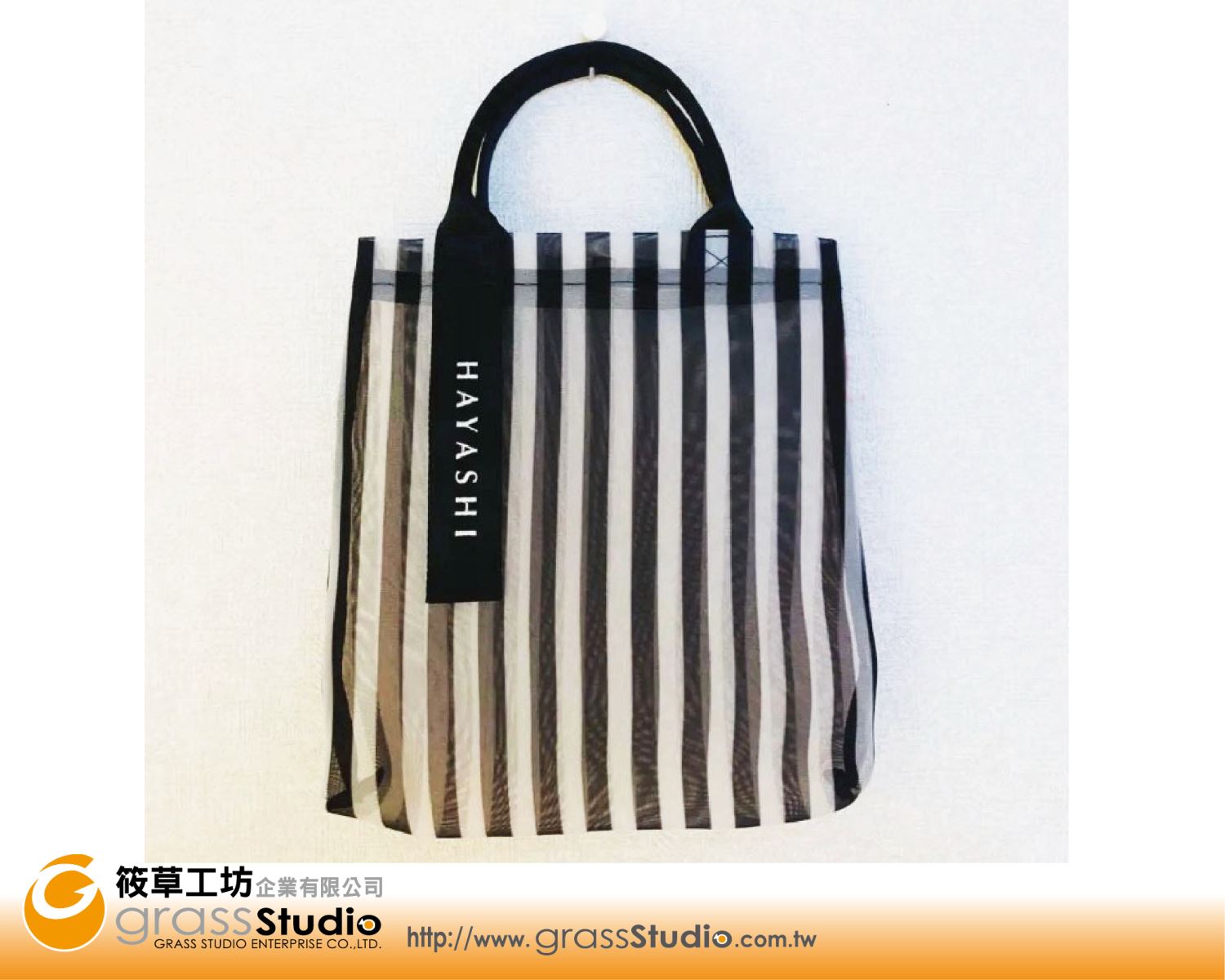 尼龍網紗茄芷袋-帆布提把(條紋客製)