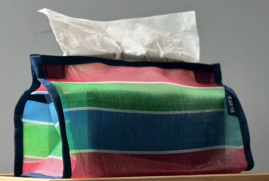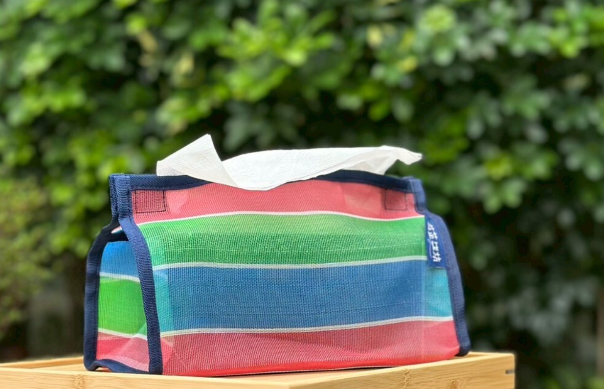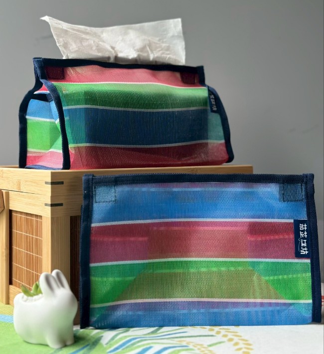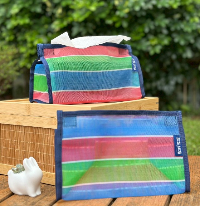 尼龍網紗茄芷袋-帆布提把(條紋客製)