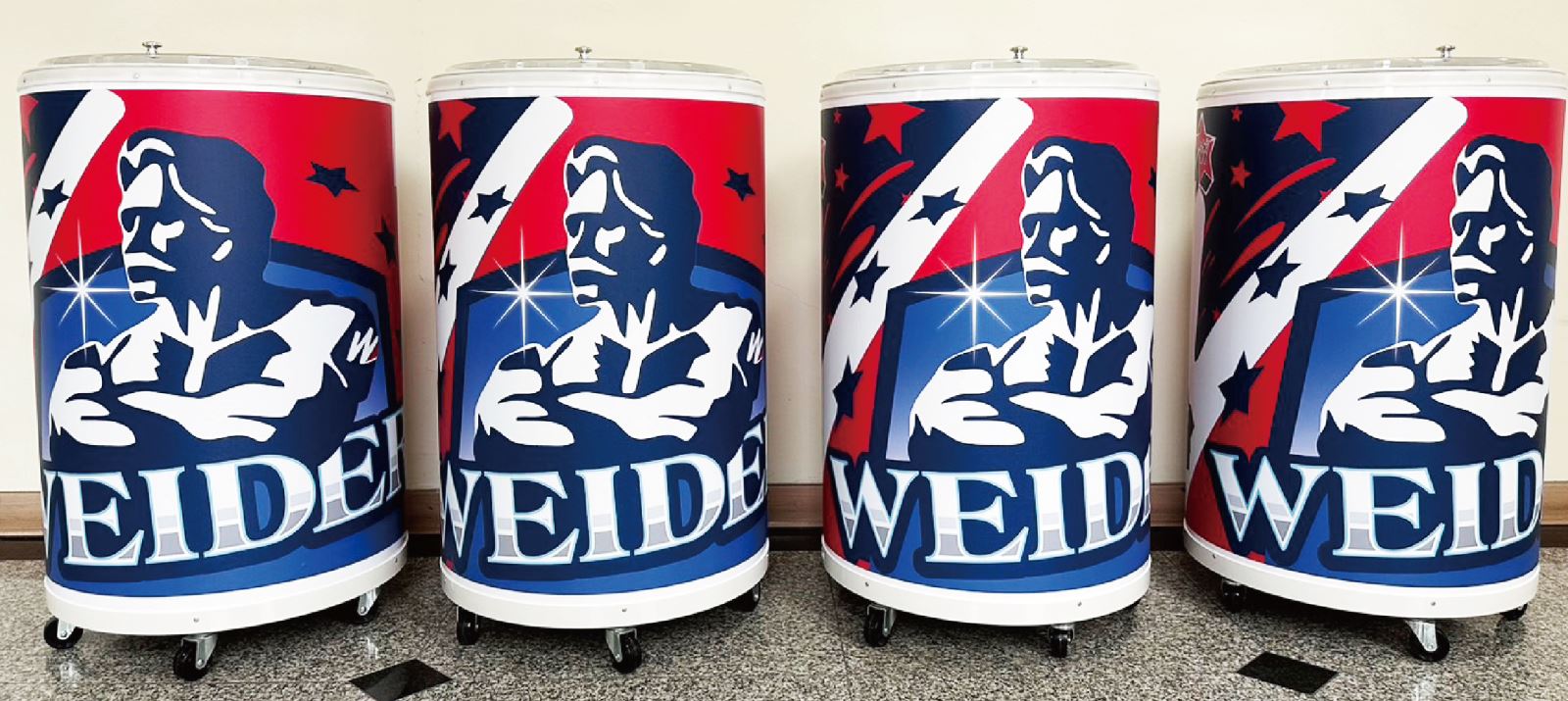 ●現成冰桶貼上客製化輸出,具廣泛廣告效益,夏天辦活動的好幫手。