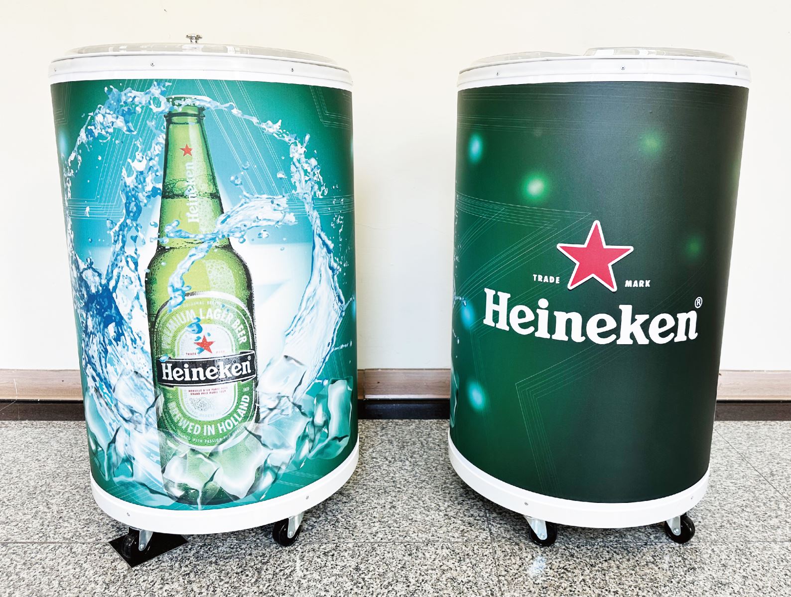 ●現成冰桶貼上客製化輸出,具廣泛廣告效益,夏天辦活動的好幫手。