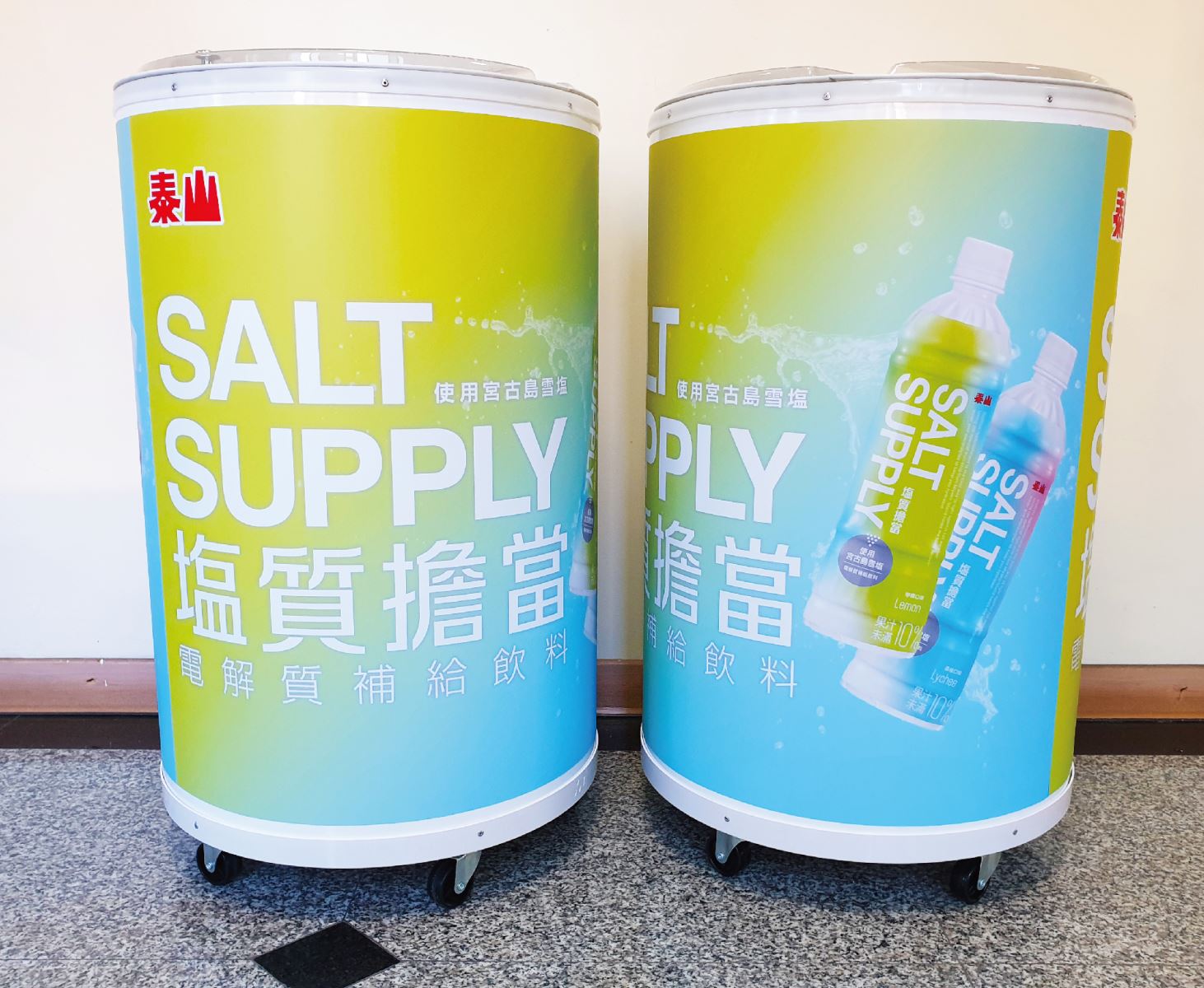 ●現成冰桶貼上客製化輸出,具廣泛廣告效益,夏天辦活動的好幫手。