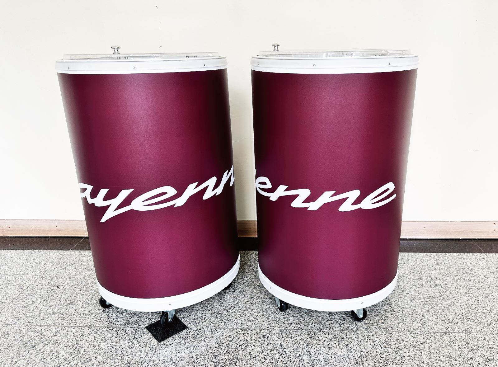 ●現成冰桶貼上客製化輸出,具廣泛廣告效益,夏天辦活動的好幫手。