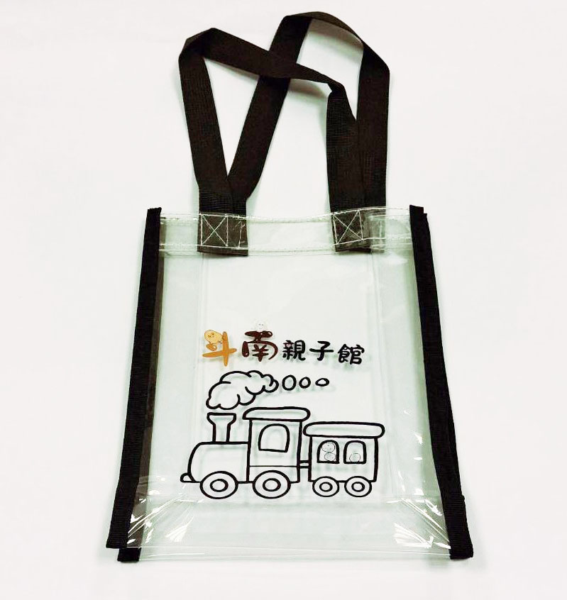 材質 : 0.3mm PVC , 袋口反折 , 織帶包邊 , 提把2.5*45cm 車交叉
