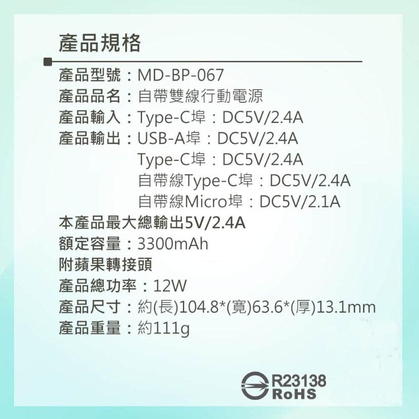 品名 : MD-BP-067 5000 無快充版