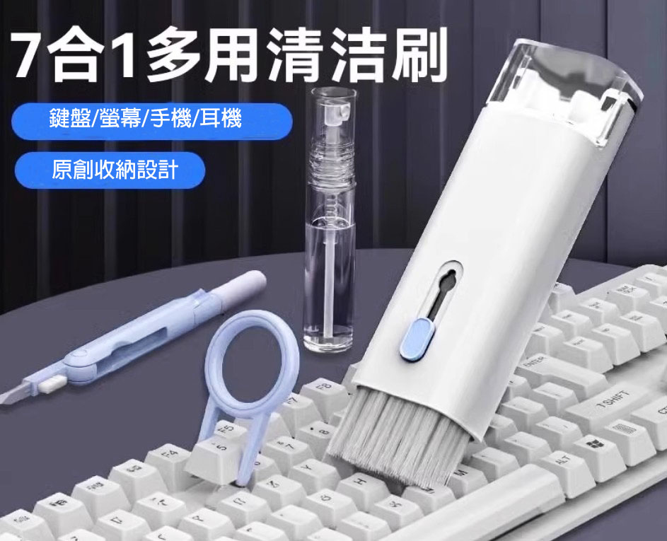 材質 : ABS, 矽膠 , 海綿 , 纖維絨布-七合一
