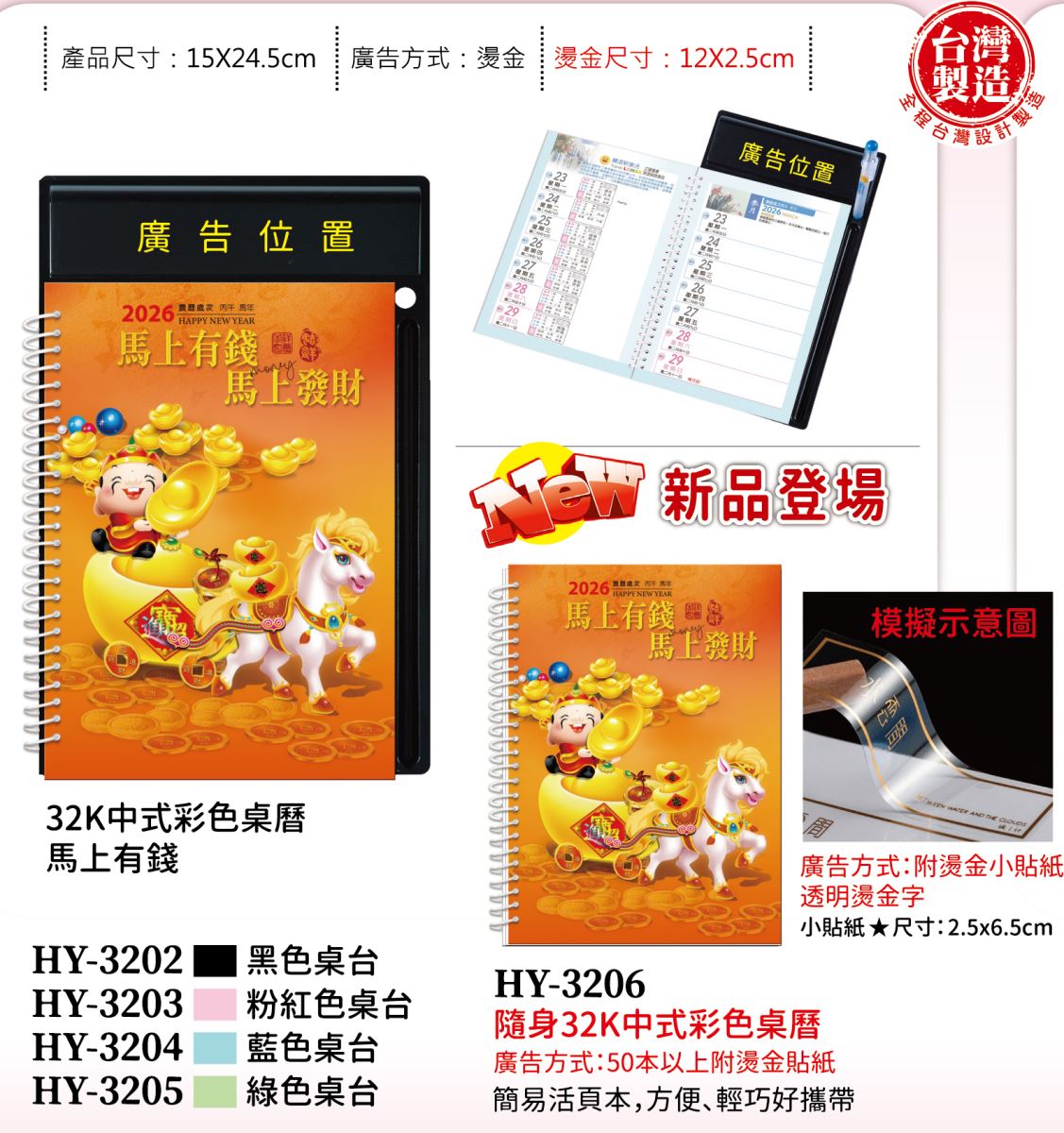 s-HY-25H-馬年25K燙金三角台月曆