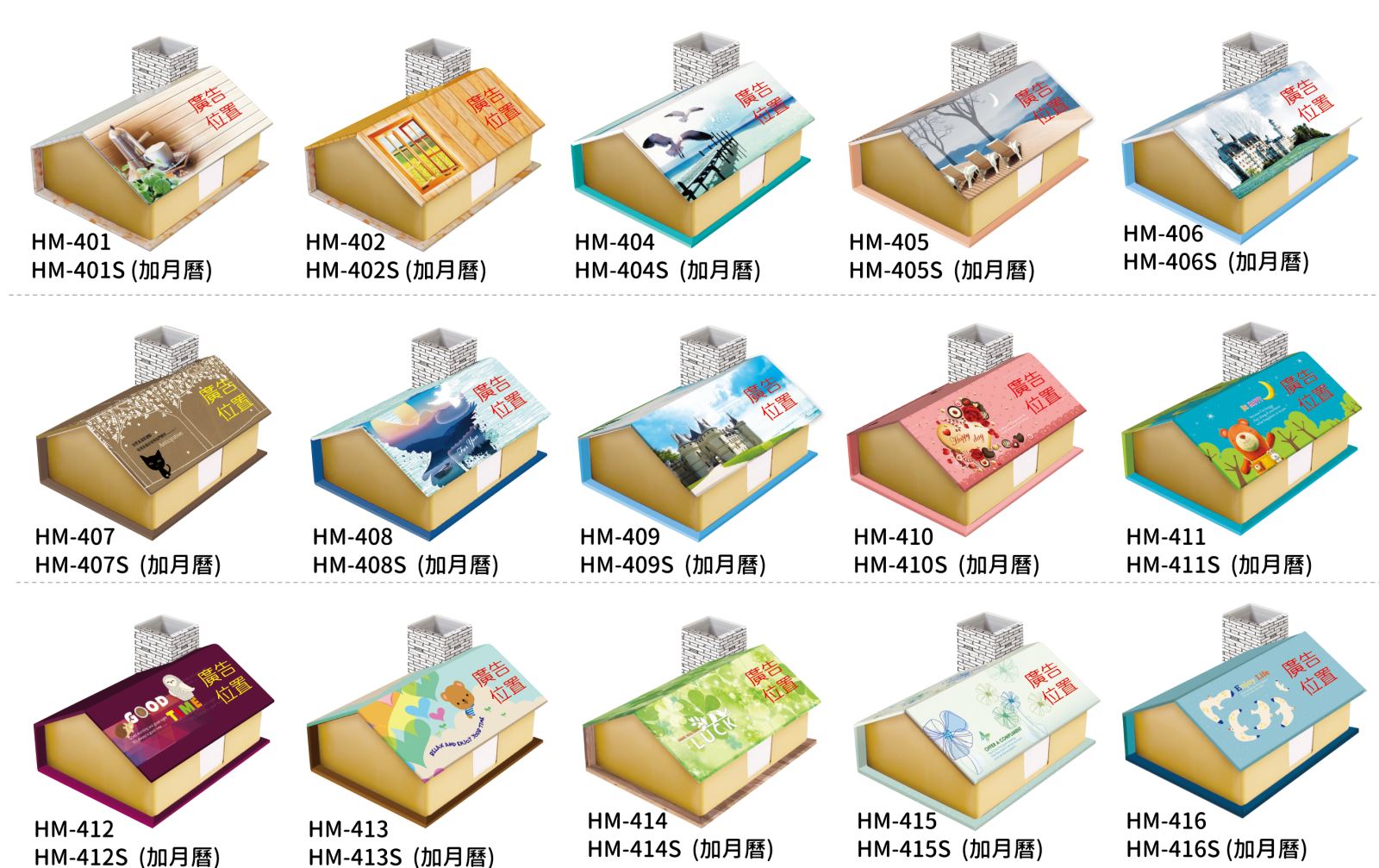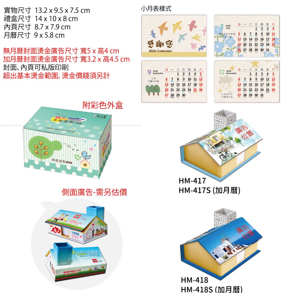 (無月曆)封面廣告燙金尺寸:5cm x 4cm 【超出基本燙金範圍,燙金價錢須另計】